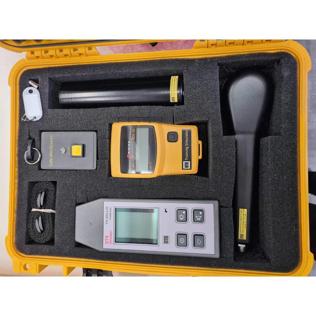 – A radiofrequency source, such as those shown, is placed in the training area and the simulated unit activated, the instrument then functions exactly as the real instrument does but is detecting the radio field not ionising radiation.