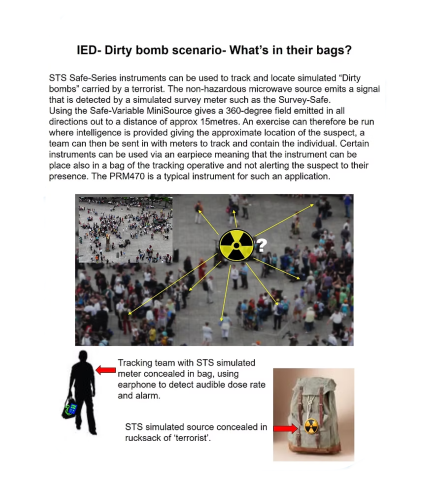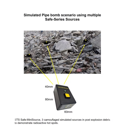 The STS Safe-MiniSource lends itself perfectly to running scenarios where the source is required to be hidden from view/where multiple sources would realistically be found such as after a pipe bomb explosion where you’d find hot spots of highly active material.